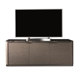Three soft-close doors. Shelves inside. Wood top. Metal accents on the base.