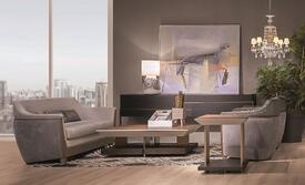 The Coral Center Tables are inspired by geometric design and have metallic details that are unique to the Coral collection. A variety of finishes are available to select. The combination of finishes is optional (in the case of Walnut or Oak finishes).