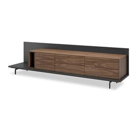 LINK TV furniture contains downward opening doors with high-resistance technical threads, ensuring durability. This design includes the option of two-toned finishes in the EVOLUTION line. The LED lighting illuminates the rear edge, enhancing the sophisticated design of the piece.