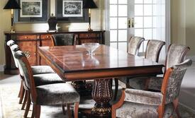 The Dali table is a striking expression of classic refinement. Its carved legs, highlighted with gold leaf, bring a sense of grandeur and artistry to the room. Rich veneers and traditional craftsmanship give the table a distinguished presence, making it ideal for the environments where elegance and tradition take centre stage.