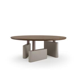 Un salón contemporáneo que combina calidez, elegancia y equilibrio artístico. El aparador Link en acabado Nogal Cappuccino se convierte en el punto focal, con sus refinadas puertas de cristal enmarcadas en níquel grafito y un interior suavemente iluminado que aporta profundidad y ambiente. A su alrededor, las mesas Tone introducen un ritmo dinámico gracias a sus siluetas redondeadas, alturas combinadas y sutiles contrastes de color —desde el lacado visón hasta el verde musgo. Las formas suaves y la combinación de materiales contrastantes crean una sensación de equilibrio y sofisticación, convirtiendo este ambiente en una verdadera expresión de lujo contemporáneo con un carácter atemporal.