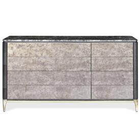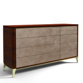 Eight drawers. Top drawers with soft-close mechanism. Bottom drawers with touch-latch system. Brass base with legs.