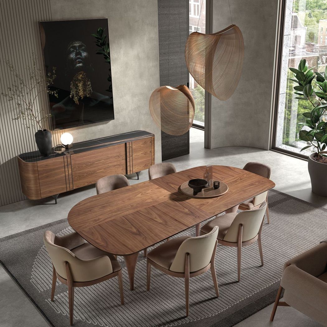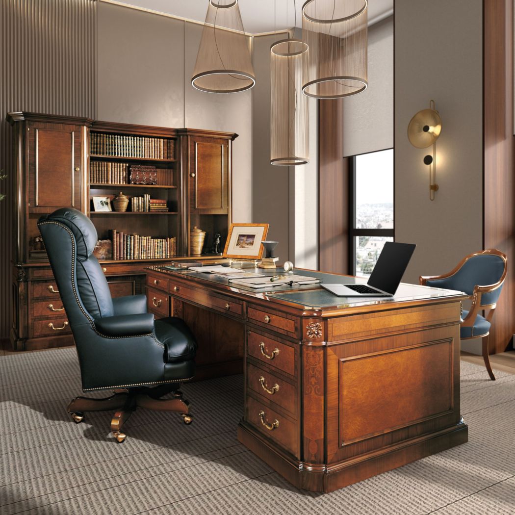 Esta colección fue inspirada por la combinación sutil del Inglés Neoclásico y Adam periodo hermanos de los de 1800. Lleva el nombre de un compositor romántico español, conocido por el ritmo sublime, la proporción y la fantasía de su música. Nogal y raíz de fresno se acentúan con filetes de boj y grecas de olivo. Incrustaciones florales.