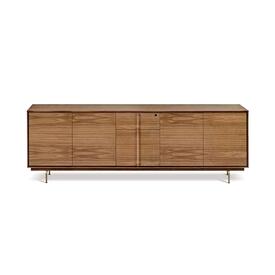 Tapa con piel y 2 pasacables. Buc derecho con 4 cajones con cierre retardado. Cerradura con llave en la parte lateral del buc.